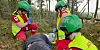 Ambulansepersonell øvelse i terrenget med hjelmene som brukes i tjenesten i dag.Foto: Jørn Finsrud.