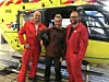 Fra venstre: Redningsmann Bjørn Carlsen, Gunnar Elinder og luftambulanselege Eivinn Skjærseth foran helikopteret på basen i Trondheim.Magnus Elinder