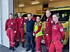 Alle tre bilene var inne en kort stund ved stasjonen. Da benyttet Ambulanseforum anledningen til å ta et bilde: Fra venstre ser vi andreårslærling Emilie Tjørhom, førsteårslærling Jonatan Thune, bak Alf Kvia, stasjonsleder Jarle Åmodt, Hanne Victoria Hatleskog, andreårslærling Morten S. Lorentzen og Mari Oftedal.